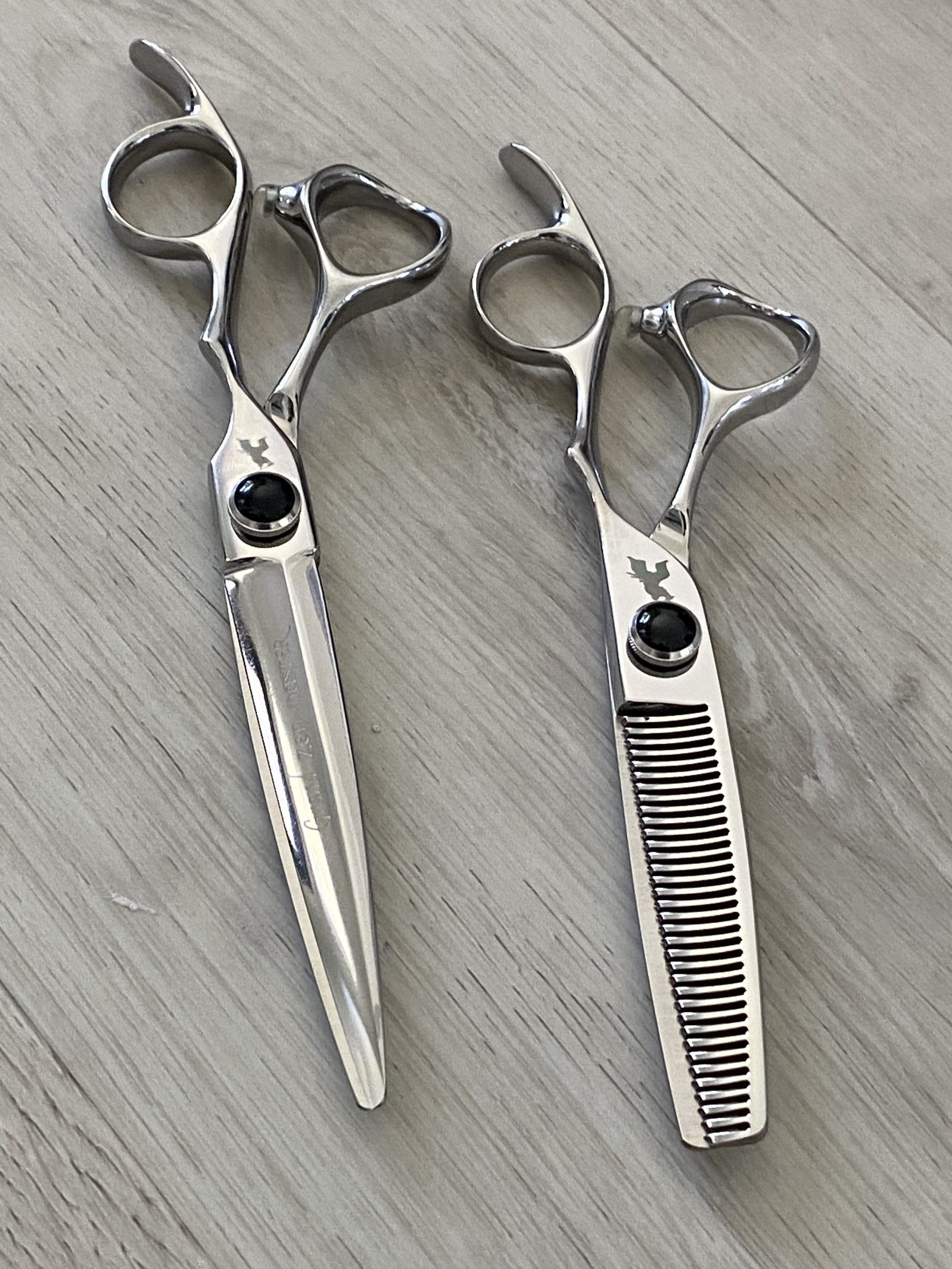 The One That Does It All…. We kept getting asked for a scissor that does it all and after much thought and consideration we developed the Scorpion! The tip is fine so it can do detailed/personalized work even on fine hair. The blades have the perfect convex shape for slicing which also makes them perfect for thick hair and dry cutting and cutting edge is ideal for solid form / precision cutting. The handle is built for comfort, easy point cutting and scissor-over-comb! Create the perfect fade with the tip is so flat that this scissor will get you closer than ever before. All this combined with and incredible ball bearing screw system and made with a super tough special cobalt alloy, the Scorpion will give you years of cutting pleasure. We’ve combined with the 6″ Invisibled Thinner for reducing weight, creating seamless layers and softening perimeters… this is a powerhouse duo is not to be missed at this very special price.